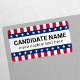 Étiquette papier personnalisable avec votre nom de candidat personnalisé et une ligne de texte personnalisé supplémentaire. Inscrivez le nom de votre candidat politique favori.
