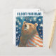 Postcard with stunning graphic of an dreamer bear with red and white stripes around his shoulders like a blanket, under a starry sky. A motivational message saying "Hold onto your dreams." If you love the artwork but not the message, you can change it to whatever you want. This beautiful bear is one of a series of American animals.