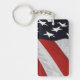 A vivid red, white and blue close up of the Flag hanging from Poughkeepsie's Hudson River Bridge.