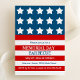 Celebrate your patriotic spirit with our Stars and Stripes Party Invitation! This beautifully designed invitation is perfect for your Memorial Day or Independence Day Parties, featuring a striking white star pattern on a navy blue background, complemented by bold red and white stripes to hold all your party details. Make a statement and set the tone for an unforgettable patriotic celebration with these eye-catching invitations.