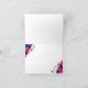 A red, white and blue patriotic design with wavy lines and stars. Customizable card is great as a thank you.