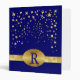 Golden stars with golden band and label on blue. You can change the background colour. Personalize with your initial and other text.