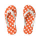 Kids flip flops are shown in white with a patriotic stars print in orange and white.