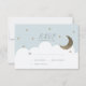 This cute boy's baptism RSVP/reply/responce card features a baby blue background with faux gold glitter stars, the crescent moon, and white clouds. The reverse side features a white background faux gold random dot patterns. Personalize for your needs. You can find more matching products at my store.