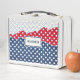 This is a standard metal lunchbox that appears to work just fine. We designed this box ourselves with an uploaded photo and custom text on the front and back. It looks absolutely beautiful except the front of the lunchbox is not centered like it shows in the photo. The print borders don't align with the inset flat part of the box where the preview photo online showed it perfectly centered in there. The back looks nice and centered though.