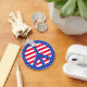 A bright red, white and blue stars and stripes design on a peace symbol keychain.