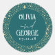 Teal and gold wedding stickers featuring a starry night sky and couple's names