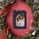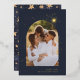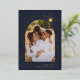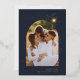 A chic and elegant holiday card design featuring a single vertical or portrait-oriented photo in a unique arched layout, embellished with a gold foil shooting star. Personalize with your custom holiday greeting and names.