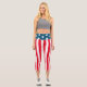 A simple red, white, and blue design represents the American flag's star-spangled banner. The vertical red and white stripes add a wonderful lengthening effect to the legs of the capri leggings. Wear these leggings in July to celebrate Independence Day or throughout the entire year just because you can.