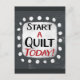 "Start A Quilt Today" is a cute text design featuring a white accent shape surrounded by cute white polka dots.