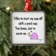 I was impressed by the quality and size of the ornament. Metal framing and design were perfect. Definitely recommend any of the metal framed ornaments. I ordered different ones all of the same quality and personalized professionally. Perfect No pictures as they were all gifts
