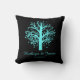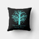 Wedding Keepsake Pillow, Family Tree; Aqua/Turquoise on Black, with Silhouette of Aqua Coloured Tree on Black pillow, add Couples' Names and Wedding Date on the front of the pillow; Back of the pillow says "the start of a new family tree" (or edit text as you'd like)