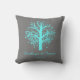 Wedding Keepsake Pillow, Family Tree; Aqua/Turquoise on Grey, with Silhouette of Aqua Coloured Tree on Black pillow, add Couples' Names and Wedding Date on the front of the pillow; Back of the pillow says "the start of a new family tree" (or edit text as you'd like)