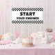 Designed with bold black and white racing checkered accents, this banner is perfect for: