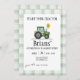 Cute green theme tractor birthday invitation for any child.
