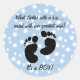 Cute blue bubbles background and baby footprints maternity design. Text says WHAT STARTED WITH A KISS... ENDED WITH OUR GREATEST WISH. Customizable text to personalize it just the way you want it. On greeting cards, invitations, mugs, stickers, postage stamps, T-shirts and more! PinkInkArt original!