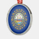 This design features the state flag of New Hampshire (NH), which is a state in the New England region of the northeastern United States. New Hampshire is bordered by Massachusetts to the south, Vermont to the west, Maine and the Atlantic Ocean to the east and the Canadian province of Quebec to the north. New Hampshire is sometimes known as the "Granite State" or the "White Mountain State. The state motto of New Hampshire is "Live Free or Die". Concord is the state capital of New Hampshire, while Manchester is its largest city. Other major cities in New Hampshire include Nashua, Derry, Dover, Rochester, Salem, Merrimack, Hudson, Londonderry, Keene, Bedford, Portsmouth, Goffstown, Laconia, Hampton, Milford, Durham, Exeter, Windham, Hooksett and Claremont.