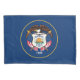 This design features the flag of Utah, which is a state in the western United States. It is bordered by Colorado to the east, Wyoming to the northeast, Idaho to the north, Arizona to the south and Nevada to the west. It also touches a corner of New Mexico in the southeast. The state capital of Utah is Salt Lake City. The state flag of Utah consists of the seal of Utah encircled in a golden circle on a background of dark navy blue. The seal contains the state motto: "Industry".