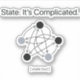This minimalist programmer sticker features the phrase “State: It’s Complicated.” paired with an abstract state-flow diagram, designed specifically as a custom-cut vinyl sticker for light backgrounds.