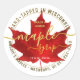 State Name Fancy Font Maple Syrup Red Leaf Black Classic Round Sticker
