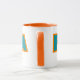This custom coffee mug features a design that displays the word "Florida" in a Luckiest Guy print font with aqua coloured letters orange coloured outline in this custom state pride jersey style theme. The rim & handle are glazed in matching colours available in 11-ounce or 15-ounce sizes microwave and dishwasher safe ceramic construction.