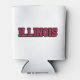 This custom can cooler features a design that displays the word "Illinois" in a Kompot Slab print font with red letters black outline in this custom state pride jersey style theme. Our can coolers fits any standard 12 oz cans and is customized on all sides including the bottom and made with high-density open-cell polyurethane collapsible foam material for easy storage.