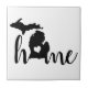Home Is Where The Heart Is! The state of Michigan black silhouette with cursive home typography with the "O" replaced with the state of Michigan silhouette. Design from the Michigander.