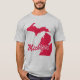 Show your home state pride with these t-shirts and other items that have an outline of the state of Michigan with the name inside the shape.