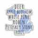Show off your love for the Great Lakes and Michigan with this clean and modern text-style sticker. Featuring the names of some of the state symbols; deer, apple blossom, white pine, robin, petoskey stone and trout. A simple, bold layout, this design is perfect for anyone who loves Michigan, freshwater adventures, and minimalist aesthetics.