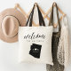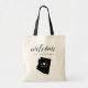 Welcome guests to your Arizona wedding with these chic and modern personalized tote bags. Design features "welcome" in modern handwritten calligraphy script, with your initials joined by a heart, along with your wedding date, inside a black silhouette map of the state of Arizona. Personalize with a specific Arizona city or location name if desired.