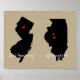 Customize your own poster! Every state is located in the design, you just have to turn on the states you want and leave the ones you don't want off. Move the hearts to your town location and update the town name. Choose a background colour and rotate the dashed line and you are done! If you have any problems let me know and I would be more than happy to make it custom for you and have it look perfect! KymberliDesigns@gmail.com