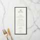 STATELY CALLIGRAPHY, black onyx and soft ecru, wedding menu. Features, elegant black calligraphy and serif typography and black onyx frame detail. Colors can be customized by using the design tool feature.