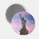 A lovely photo of the Statue of Liberty against a beautiful pastel sky of pink and blue.