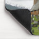 Mousepad with a wooden stave church with tombstones and graves on a graveyard at the edge of a fjord between the mountains in Gaupne, Sogn og Fjordane in Norway.