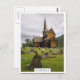 Postcard with an old wooden stave church with a graveyard in front of it with tombstones in Lom, Norway with a white edge in the text 'Norway'.