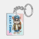 Stay Cool Cat Wearing Glasses Cap Back To School Keychain