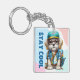 Stay Cool Dog Wearing Glasses Cap Back To School Keychain