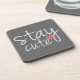 Sweet and fun typography design featuring cursive text in grey and a cute little red heart. Customize this coaster set with the background colour of your choice.