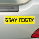 The dictionary says this about "feisty": full of animation, energy, or courage; spirited; spunky; plucky. Whoa, that's a lot of adjectives! Oh, and also "ill-tempered; pugnacious. troublesome; difficult." OK, you can be that too. But is that so bad? So slap a bumper sticker with a happy, positive "Stay Feisty" thumbs up message on your car. Cheer up, Everybody, for Heaven's sake!