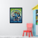 Cute illustration of the world with a flower crown, a peace sign and black and white high tops. The words "Stay Groovy" are written above the globe drawing in 70's style with "In Frankie's Room" underneath in a fun blue typeface. The words along the bottom are competely changable to say whatever you want.