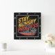 This black wall clock features the text "STAY HUNGRY FOR PROGRESS" in a bold, stylized yellow and red font. The graphic shows a runner, who appears to be white, in mid-stride on a track with stadium seating in the background. The design is motivational and fitness-oriented, encouraging continuous improvement.