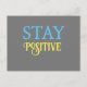 "Stay positive" – A reminder that even in the face of challenges, a positive outlook can brighten the darkest days. This postcard serves as a little boost of optimism to carry with you wherever you go.