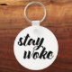 Do you wish other people would stay informed of things that are going on in their neighbourhoods and the world at large? This modern elegant scripted typography design keychain with the words "stay woke" sends out that exact message. Customize this design by adding your own text.