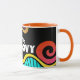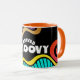 Fun retro-nostalgia 60s "stayed groovy" coffee mug featuring not-quite psychedelic but loud notebook-doodle style design and your choice of colour scheme, perfect for old hippies or groovy geezers.