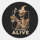 Staying Alive Funny Skeleton Drinking Coffee Happy Classic Round Sticker