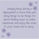 "Staying busy during a deployment is more than just doing things to do things. It's about finding ways to make memories and enjoy life, even if your loved one is away."