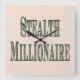 Green text reading "STEALTH MILLIONAIRE" in a font resembling those found on currency. You never know who might actually be a millionaire. Not all of them live large with flashy clothes, the fancy car, or big home. They do not advertise that they are well off. They are stealth millionaires. Advertise the fact and you aren't really be a stealth millionaire, but if no one believes you your secret is safe; perhaps you are hidden in plain sight. For stealth millionaires and those working on it.