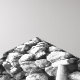 A black and white photographic design of coal and a coal shovel the coal being used to power steam trains.