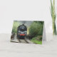 This note card features a photo of a steam train approaching Oakworth Station. Oakworth Staion is a pretty little railway station in West Yorkshire, England, and is probably most known for being one of the locations where the film The Railway Children was shot.
