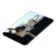 A photographic design of a vintage steam train light attached to the front of the steam engine.